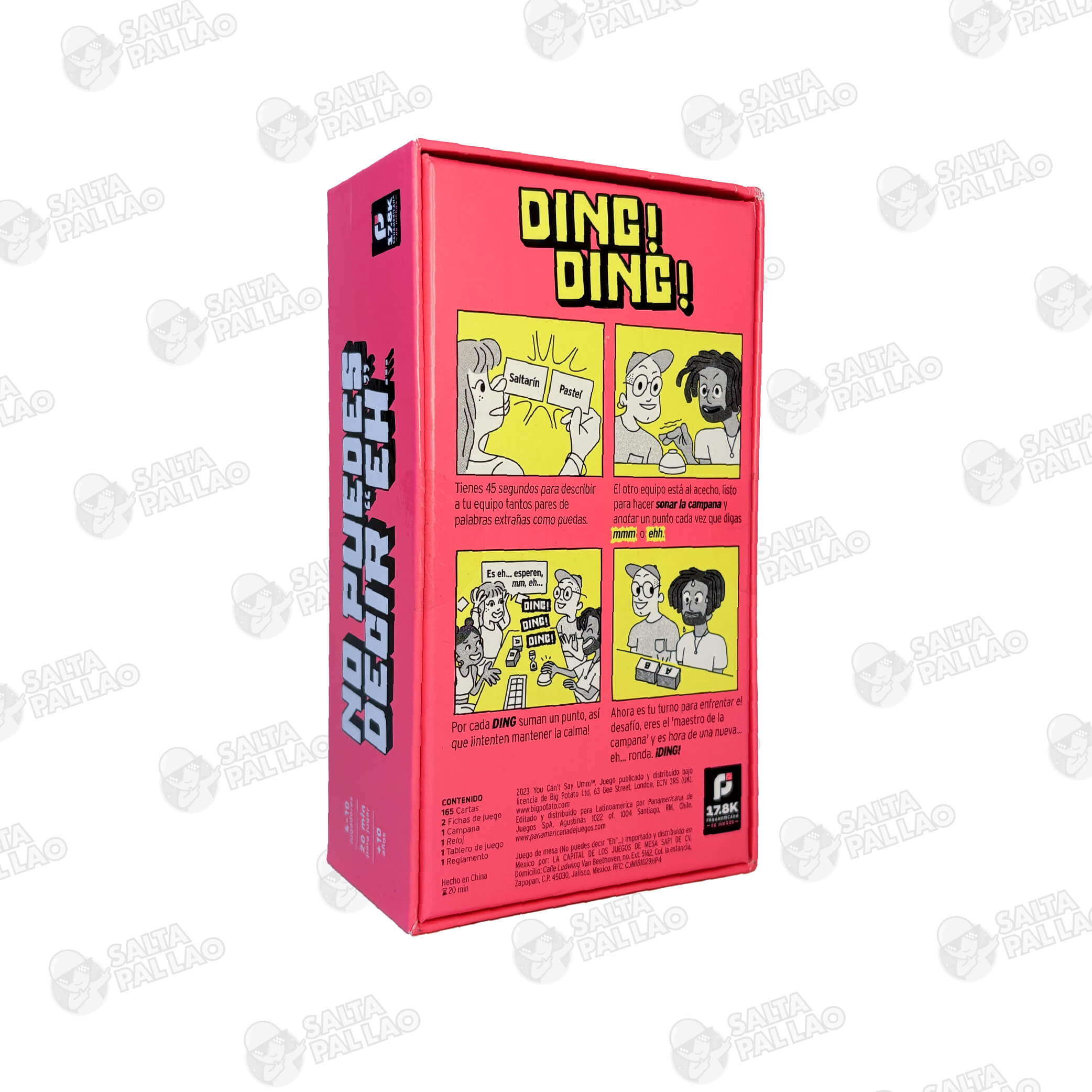 El juego de mesa No Puedes Decir Eh es un party game rápido, dinámico y cargado de risas. La premisa es sencilla, pero sorprendentemente desafiante: tendrás que describir palabras a tu equipo sin caer en los típicos “eh” o “mm”, mientras el equipo contrario está al acecho con un timbre en la mano.
